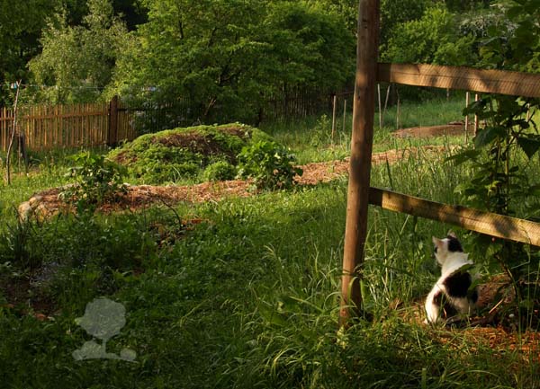 Vzhledem k malé ploše zeleninových záhonů jsem si řekla, že si jeden takový pěkný, vysoký záhon vybudujeme. Jirka nic nenamítal – asi zmíněnou knihu nečetl pozorně, a tak jsem na jaře roku 2011 vytýčila tvar záhonu a počala odrýpávat drny. Po nich jsem zaryla hlouběji a postupně vytvořila téměř celý základ záhonu. Když už mé bolavé tělo odmítalo poslušnost – shodou okolností v době, kdy dorazil na pár dní syn na výpomoc při těžších pracích, předala jsem rýč a lopatu silným mužům, kteří základ dotvořili.